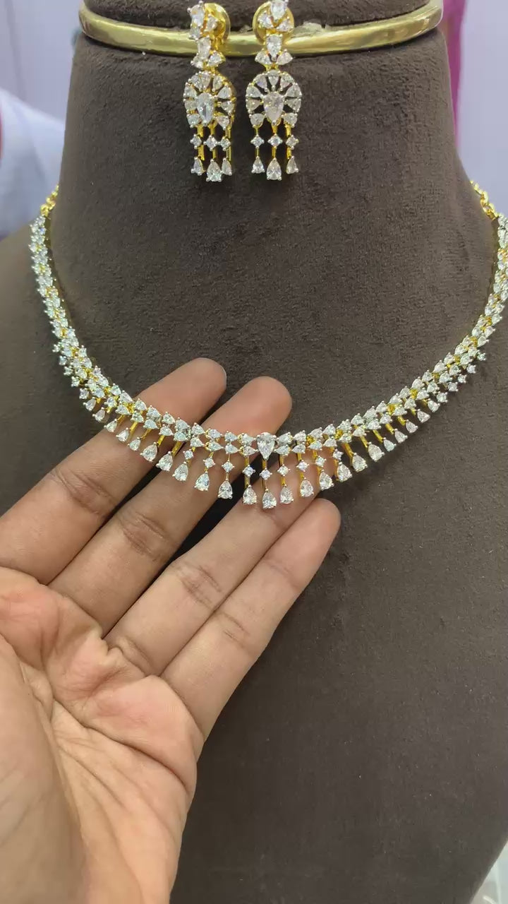 • Premium Quality Rhodium Finish 1st Grade AD Stones diamond Replica Collection N0028-CE140